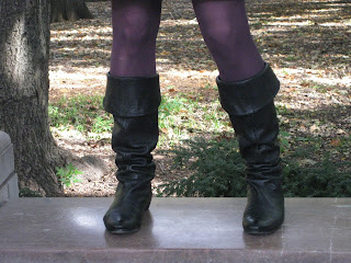 These are my Via Spiga Flat Slouch boots. I got these last year after Christmas because I realized it was just not healthy for my foot to wear my lovely but narrow leather pointed toe knee high boots every day. Alternating from flat to heels every few days is a swell idea. At first I wasn’t so crazy about them but I have grown to love them for their fun look and comfort as well as the many compliments I have gotten wearing them. Whether with jeans on the weekend, a skirt or a sweater dress these have proved to be a versatile boot with style.  (Thanks to my co-worker Ella for being a great photagrapher during our lunchtime excursion to Columbus Cirlce!)